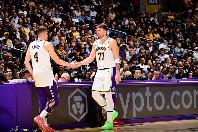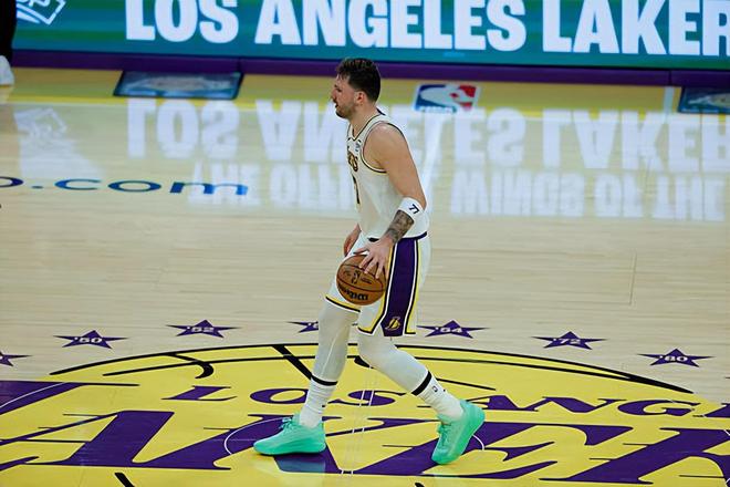 上赛季中期,达拉斯独行侠与湖人完成了一笔重磅交易并且将东契奇送到了湖人。在加盟湖人之后,东契奇在NBA常规赛中总共代表球队出场28次,场均出场时间达到了35.1分钟,场均数据为28.2分8.1篮板7.5助攻1.6抢断0.4盖帽,还有3.7次失误和2.4次犯规,投篮命中率43.8%,三分命中率37.9%,罚球命中率79.1%。到了季后赛,东契奇总共出场5次,场均出场时间达到了41.6分钟,场均数据为30.2分7篮板5.8助攻1抢断0.6盖帽,还有4次失误和3.2次犯规,投篮命中率45.2%,三分命中率34.8%,罚球命中率89.1%。本赛季开季至今,东契奇在前30场比赛中受到伤病的影响总共出场23次,场均出场时间达到了36.3分钟,场均数据为33.7分8.3篮板8.6助攻1.6抢断0.6盖帽,还有4.3次失误和2.5次犯规,投篮命中率46.2%,三分命中率32.4%,罚球命中率80.3%。